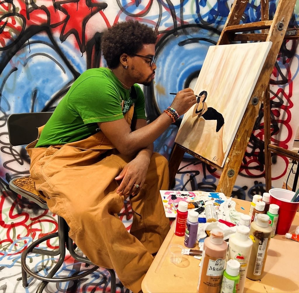 RJ: “ART rules our everyday life and how you view it reflects on how you express it, whether that is clothing or in your artwork. Most people don’t realize how much their culture or upbringing impacts their way of expressing themselves artistically. For example, a portrait painting of a African American male with braided cornrows or low cut waves on a male would represent most black men cultural representation where most of us would connect and relate to it because that is a popular protective style in African culture. All in all, cultural representation plays a big role in  art and fashion for others connect and feel like they belong & understood”