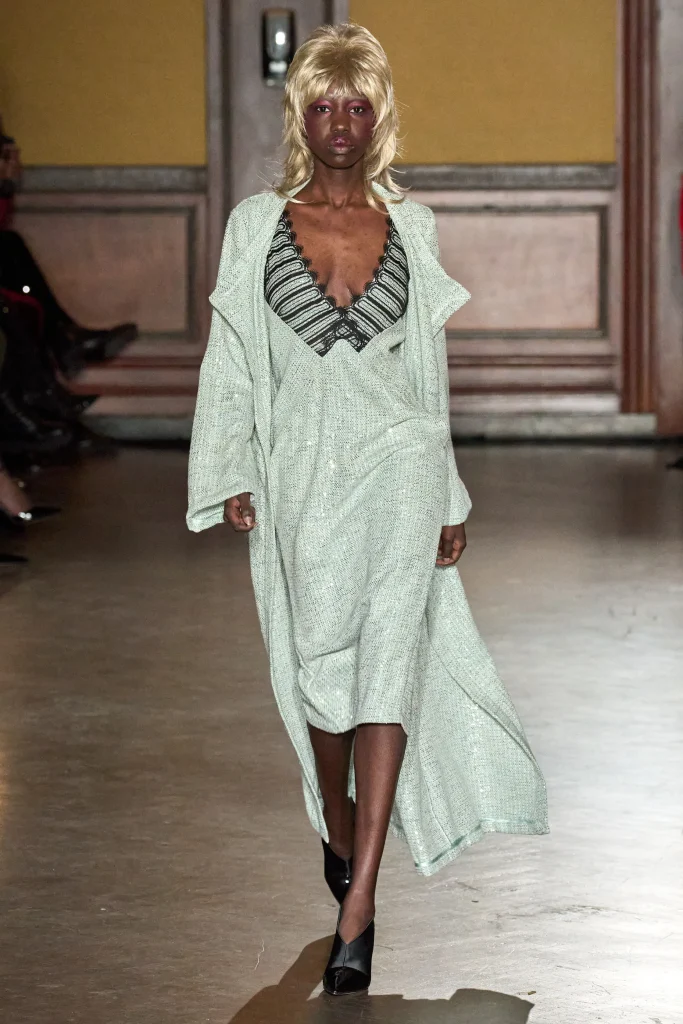 And last but not least, we have New York based designer, Frederick Anderson. For his fall collection, Anderson decided to tell a story of the way cultures can come together to show progression, using music as the ringleader ; Anderson’s storytelling abilities through clothing is always a standout characteristic. Loving to use a range of fabrications like sheer slips, leather micro shorts and capes with a dash of his signature crochet separates you can imply, Anderson knows what type of woman he is designing for. All in all, with his music analogy in mind he gives a great example of how cultures can unite and evolve together. “It’s 2024 and we can’t even get along with our next door neighbors,” he said. “If we don’t learn to integrate cultures, we’re at a loss.”
