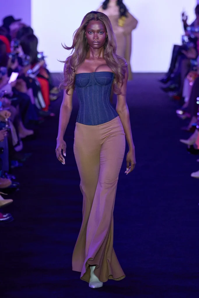 Let’s talk about Laquan! Laquan Smith, a New York native previewed his wealth based fall 2024 show at Cipriani 25, an upscale venue that plays directly into his vibe of 1980s wall street. With this collection, Smith wanted to hint on the concept of a sexy confident woman with financial stability ; as she struts to her evening plans in his figure hugging dresses and bodysuits. As models pass by, you can glimpse at Laquan’s attention to tailoring with the cinching of the waist of the jackets and the darts placed into the duster coats. Say what you want about Laquan but he steals the show every time as he pays attention to making his woman consumer feel like the boss she is. “she’s in charge, she’s going to work, she’s going to take you to court,” the designer added with a laugh. “What I want is for her to just zip up the dress and let the magic start,” he added. “Once she makes that journey to the mirror she is ready to go out. And if she doesn’t have a place to go, she will find one, because now she has the dress.”